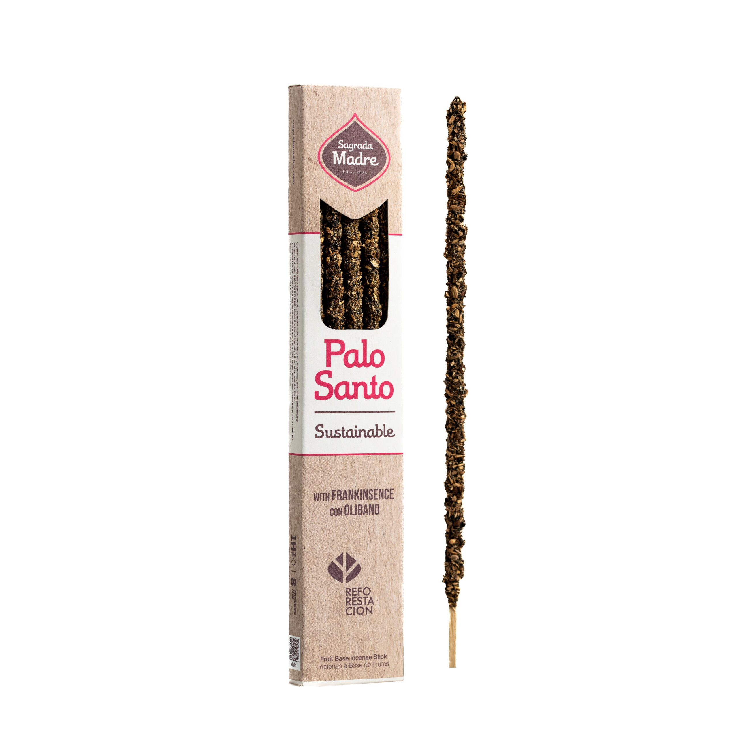 Composición: madera de palo santo (peruano), aglutinante natural y resina de incienso (Frankincense).